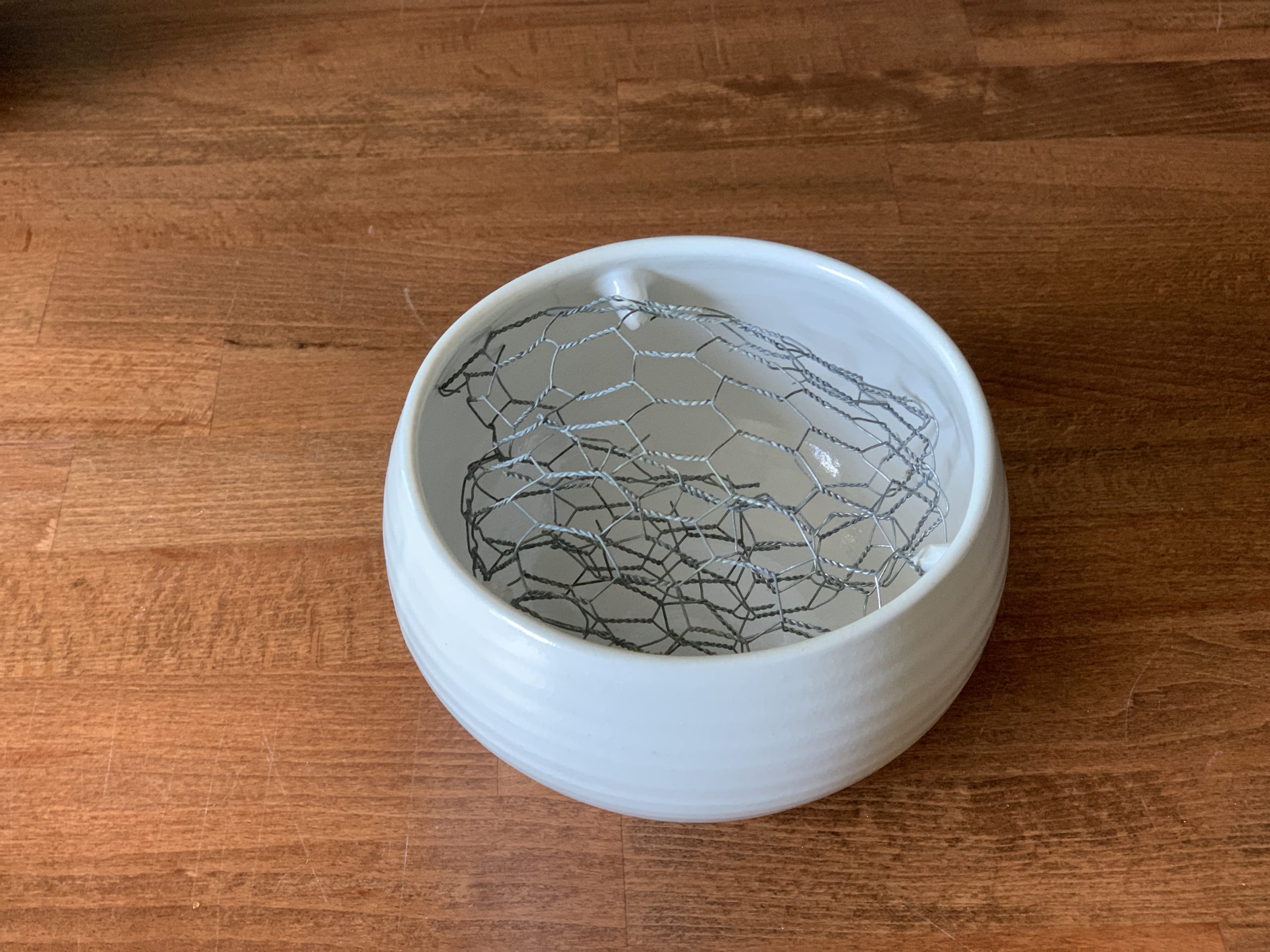 Die handgefertigte Blumenschale „Spike“ vereint minimalistisches Design mit praktischer Funktion. Mit ihren drei Dornen eignet sie sich ideal zum sicheren Halten von Hasendraht-Bällchen oder Steckigeln und sorgt so für stabile, harmonische Blumenarrangements. Jede Schale ist frei von Hand gefertigt und damit ein Unikat, das zeitlose Eleganz und hochwertige Keramik vereint.