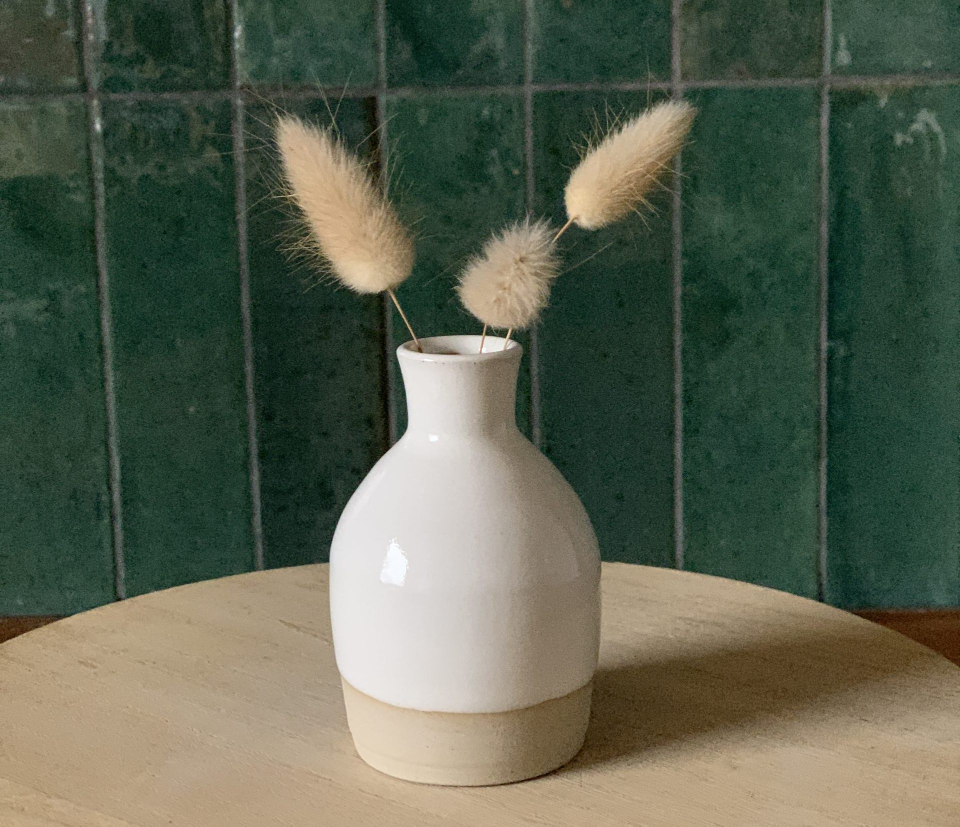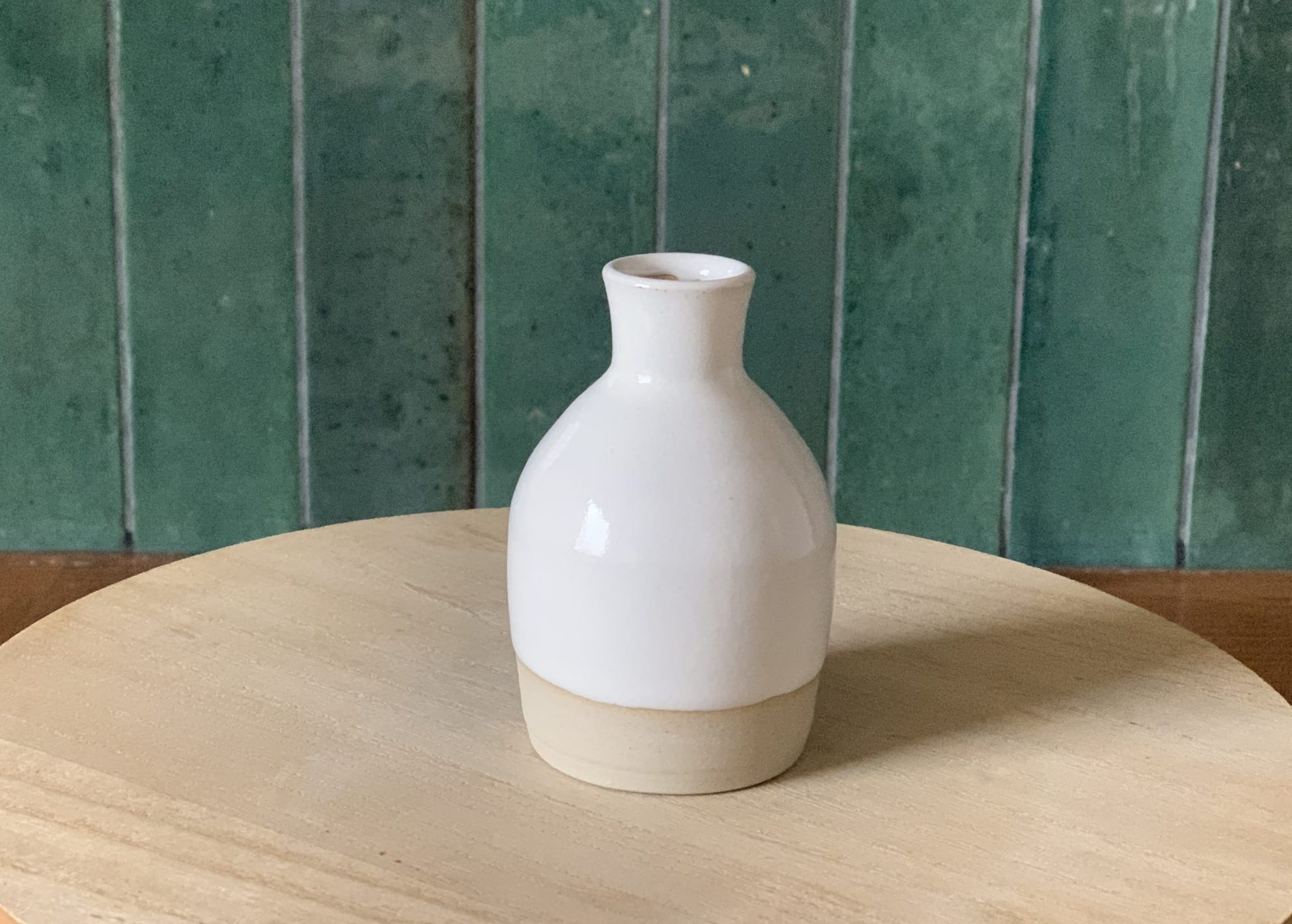 Die kleine Blumenvase „Mindy“ wird – wie all unsere Keramikstücke – von Hand gedreht und nachhaltig produziert. Mit ihrer seidenmatten weißen Glasur und der weichen, runden Form bringt sie eine ruhige, minimalistische Ästhetik in jedes Arrangement. Ein besonderes Highlight ist das Design, bei dem der untere Teil bewusst von der Glasur ausgespart wurde.