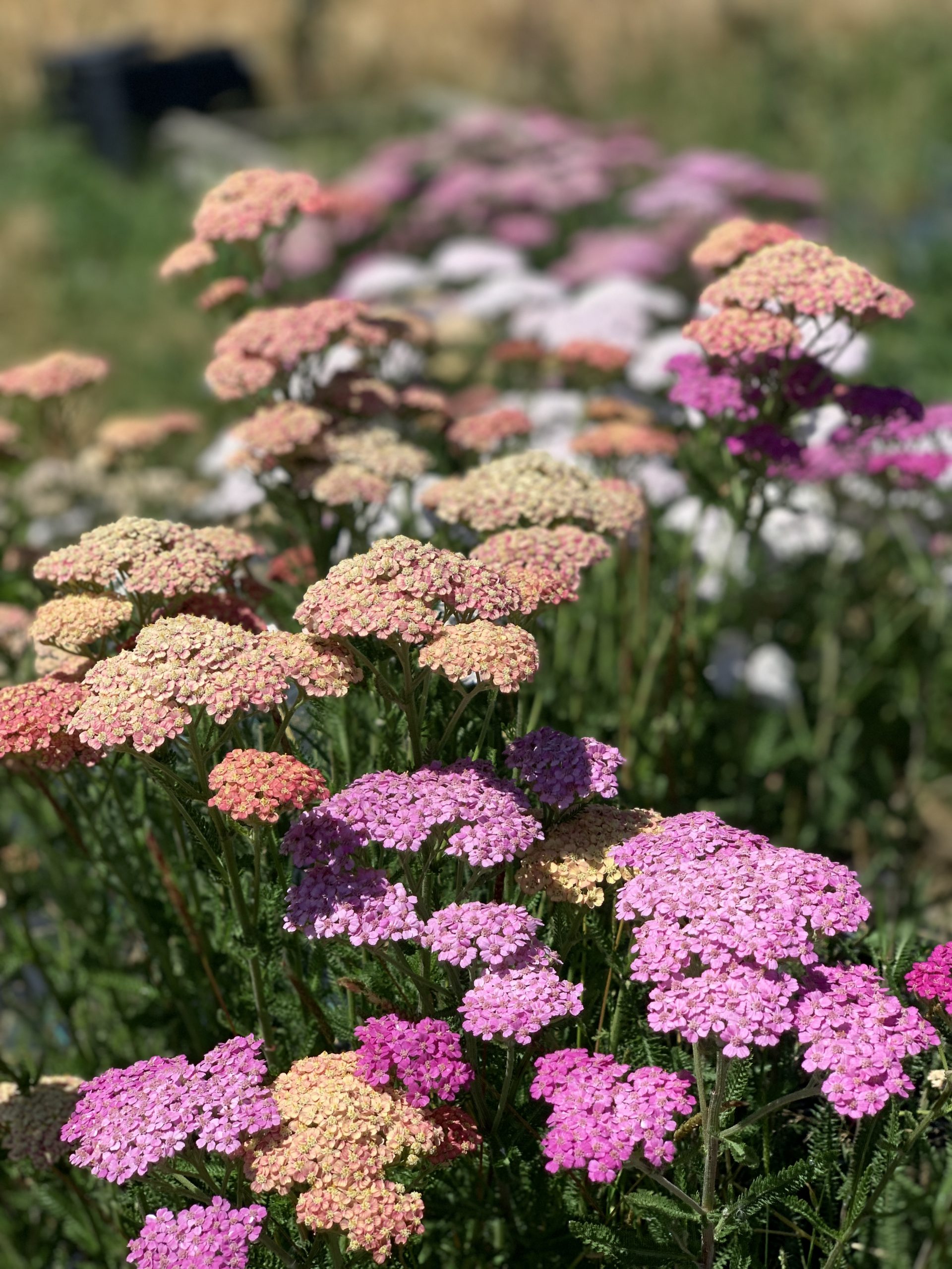 Die Schafgarbe ,Sommertraum‘ besticht mit ihrem zarten Pastelltönen in rosa, lachs, hellgelb und creme.
