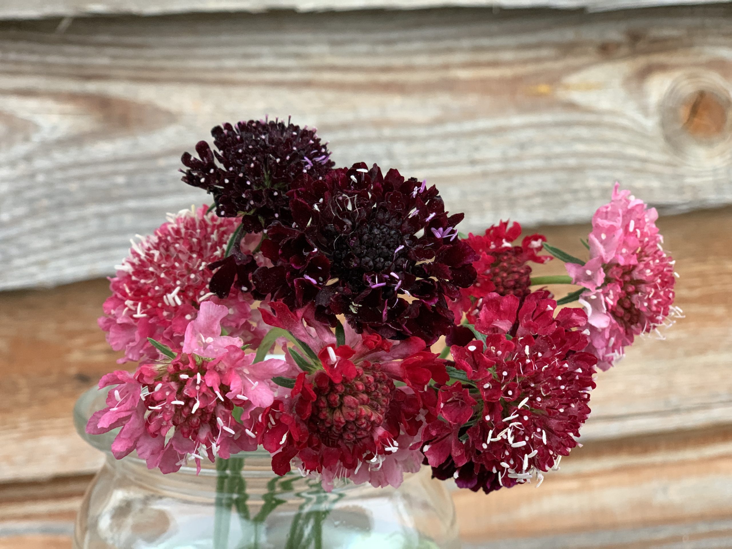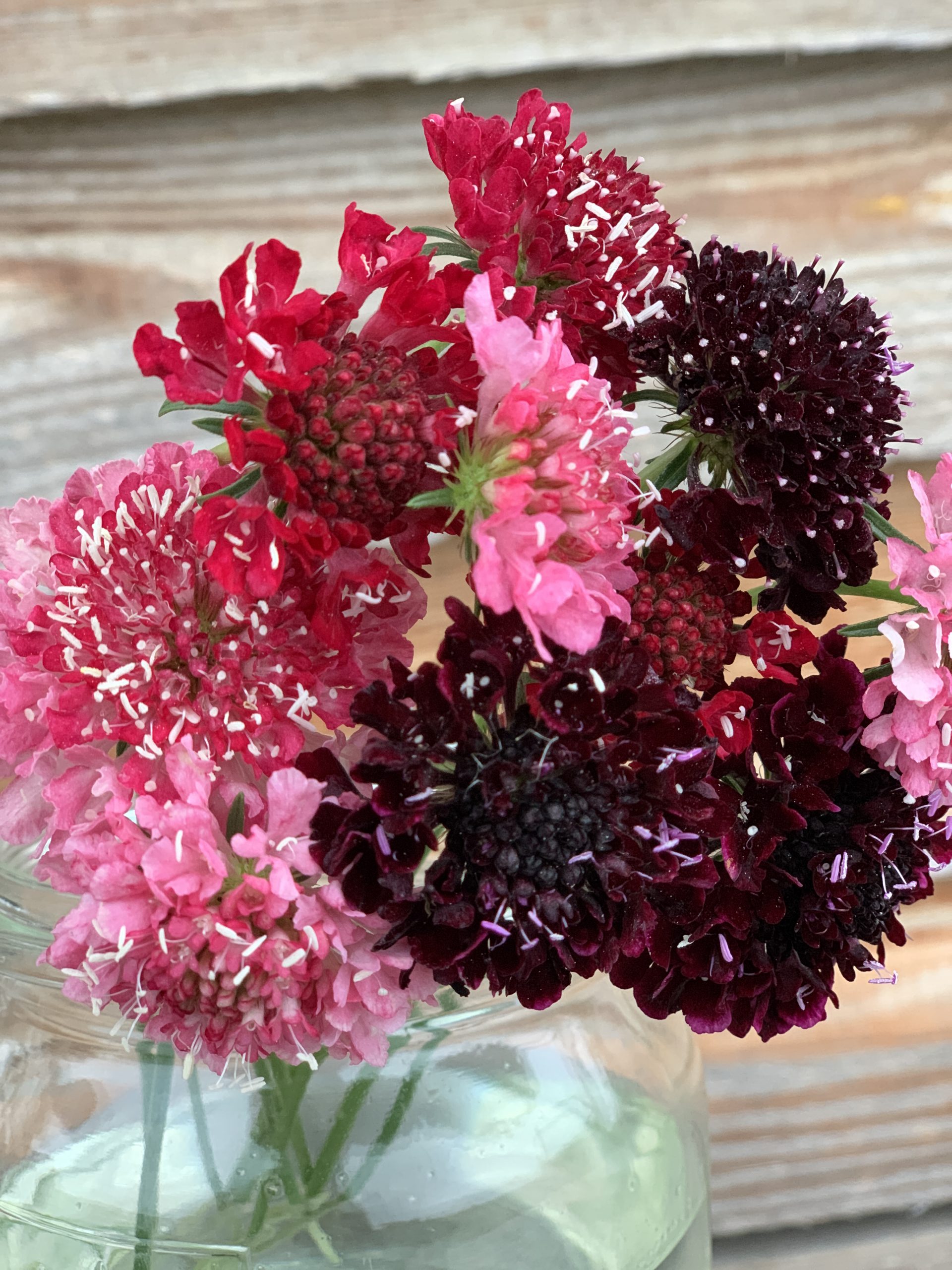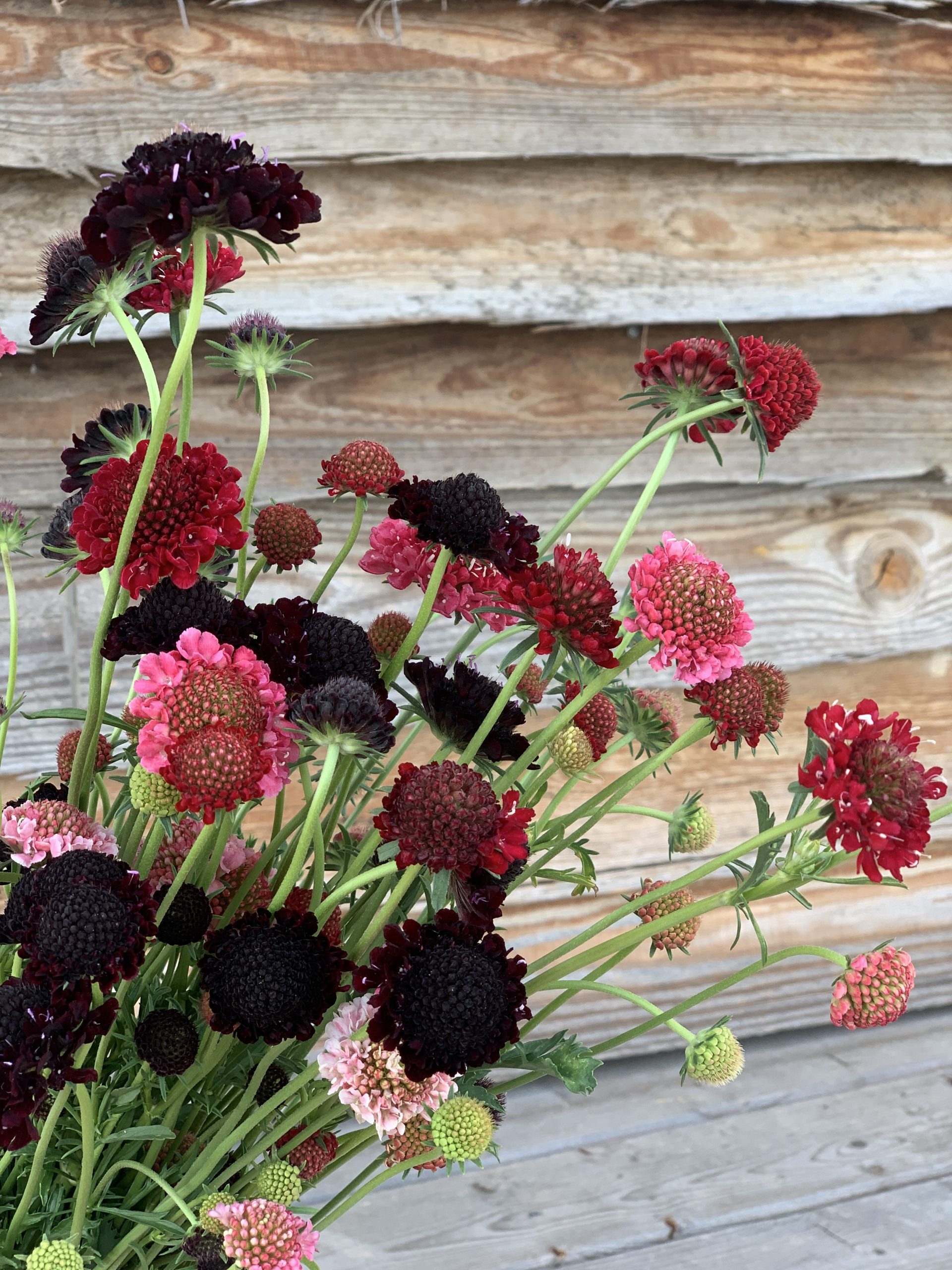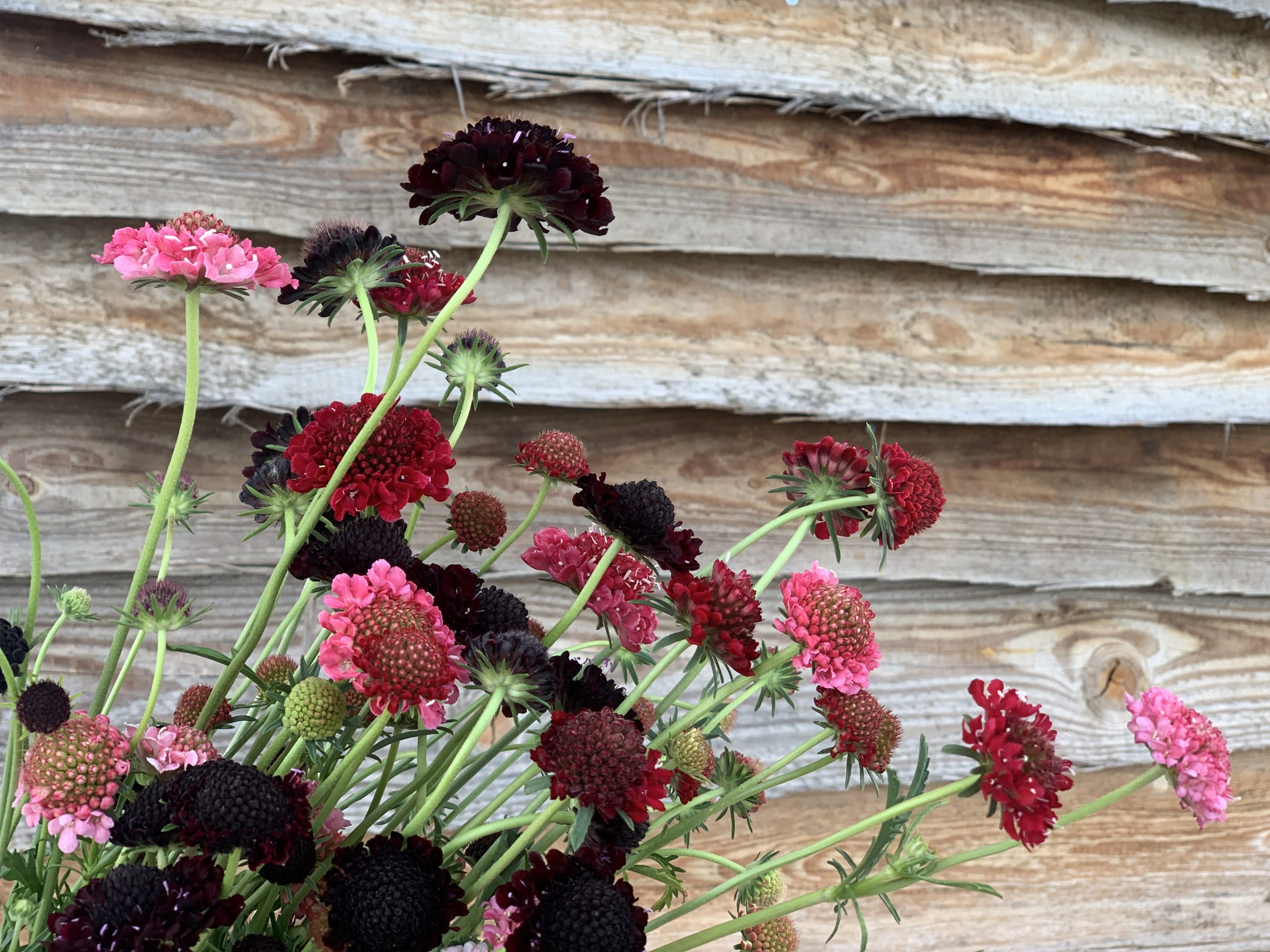 Die Skabiosen-Mischung ,Abendrot Mix‘ besticht mit ihrem zarten rosa, lachs, beerenrot und dunkelroten Farbtönen.